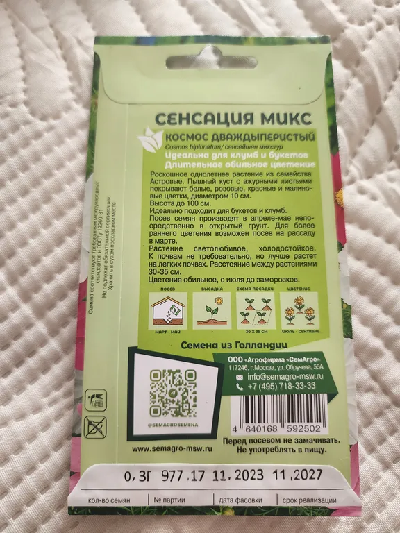 Если вы выращивали Космос Сенсация, смесь окрасок, об этом растении. По возможности загрузите фото куста или плодов. Спасибо!