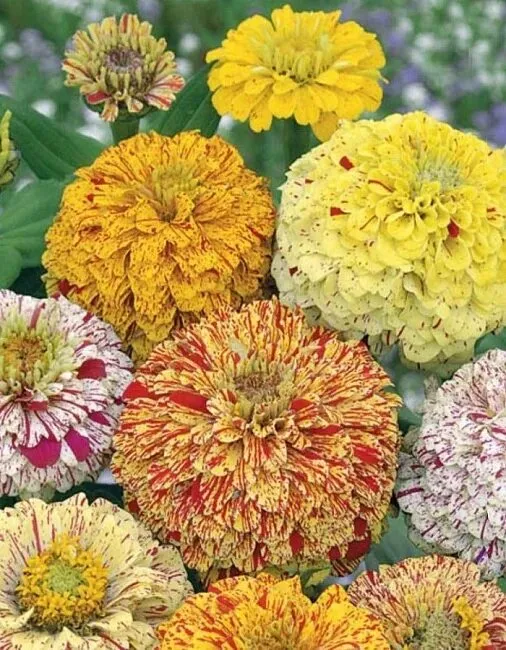 Тем, кто предпочитает «что-нибудь особенное», предлагаем смесь цинний, способных удивить оригинальной, пестрой окраской. Великолепные, быстрорастущие растения с прямостоячими стеблями достигают высоты 70 см. Цветут обильно и продолжительно, с июня до заморозков. Соцветия крупные, Ø10-12 см, держатся на растении до 30 дней. Смесь используется для срезки в букеты и для украшения цветников. Хорошо сочетается с календулой, бархатцами, вербеной.