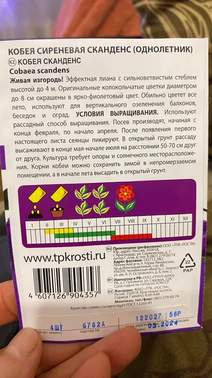 Прекрасная лиана, просто влюбилась в нее) вначале бутон распускается светло-зеленого цвета, потом постепенно приобретает ярко сиреневую окраску. Растение очень активное, почти агрессор, нужно обязательно для него много места. Своими усиками достает до любой опоры и тянется верх. Выкопала на зиму корневище, держу в холодном месте в горшочке. Но на всякий случай посадила еще и семенами 23 января, так как очень долго прорастает.