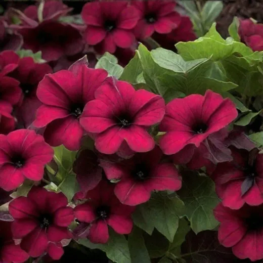 Мощный каскад с крупными цветками исключительной окраски! Растения быстрорастущие, хорошо ветвящиеся. Плети сильные, устойчивы к ломкости, длиной до 80-100 см. Формирует множество крупных цветков насыщенно-бордового цвета. Цветение продолжительное. Размер цветка 5-7 см. Отличная устойчивость к неблагоприятным погодным условиям. Великолепно подходит для подвесных корзин, кашпо, балконных ящиков.