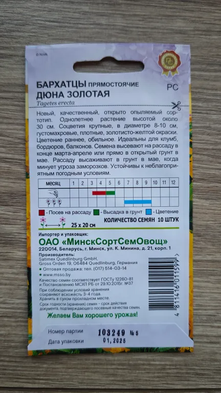 Если вы выращивали Бархатцы Дюна золотая, об этом растении. По возможности загрузите фото куста или плодов. Спасибо!