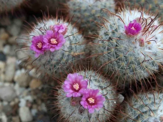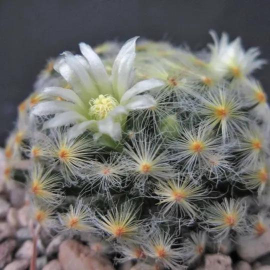 Цветет кактус красными, желтыми и белыми цветочками. Они небольшие – диаметром от 10 до 60 мм. По окончании фазы цветения маммиллярия дает плоды (ягоды), а позже семена.