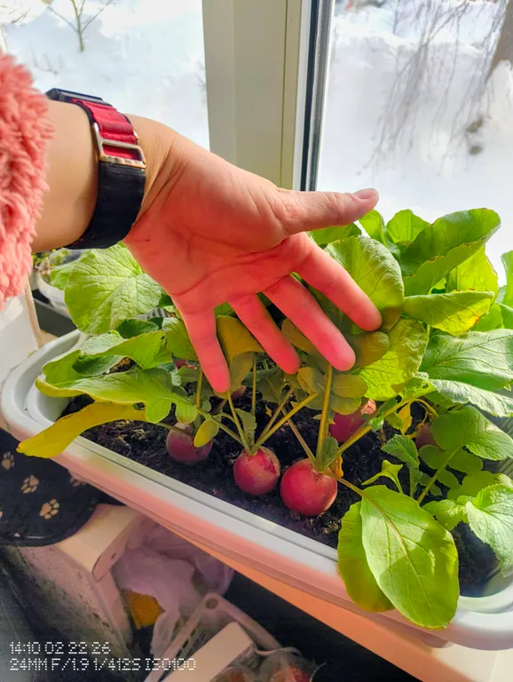1.Частые поливы - грунт должен быть умеренно влажным и не должен пересыхать, это негативно скажется на урожайности и вкусе корнеплодов. 2. Прореживание - если неободимо прореживание, то лучшее для этого время, когда всходы стали выпускать 1 настоящий лист, откладывать на потом, не стоит, иначе снизится урожай. 3. В теплице или парнике нужно проводить проветривания и придерживаться температурного режима + 16 - 20С, высокие температры (более + 26-28С) вызывают у растения стресс и они быстро переходят к стадии стеблевания, иногда минуя развитие корнеплода 4. В открытом грунте молодые растения подвергаются атакам крестоцветной блошкой. Надо своевременно с ней бороться, она не любит влажного грунта (поэтому своевременные поливы несут даже двойную пользу), опудривания золой, табаком, горчицей, опрыскивания отваром чеснока, томатной ботвы. 5. Если вы увидели, что всходы редиса сильно вытянулись, то можно аккуратно подсыпать землю между ними, это поможет значительно увеличить выход урожая.Удобрения и подкормки