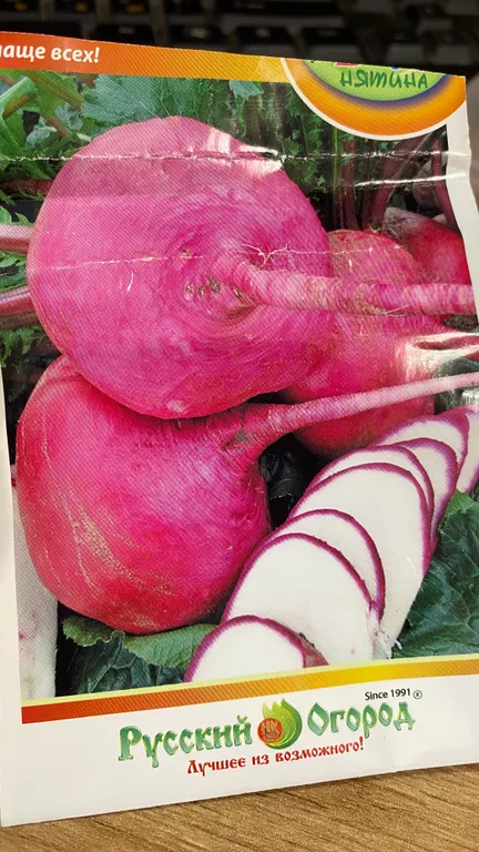 Новый гибрид репы с совершенным вкусом - абсолютно без специфической реповой горчинки! Корнеплоды округло-приплюснутые, с красивой, малиново-розовой поверхностью, массой 150-300 г. Белоснежная мякоть с повышенным содержанием Сахаров вкусна в свежем виде и не требует никакой термической обработки! Готова к употреблению через 45-60 дней от посева.<br />