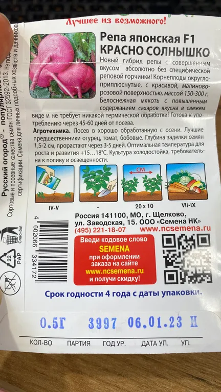 Если вы выращивали Репа японская Красно Солнышко F1, об этом растении. По возможности загрузите фото куста или плодов. Спасибо!