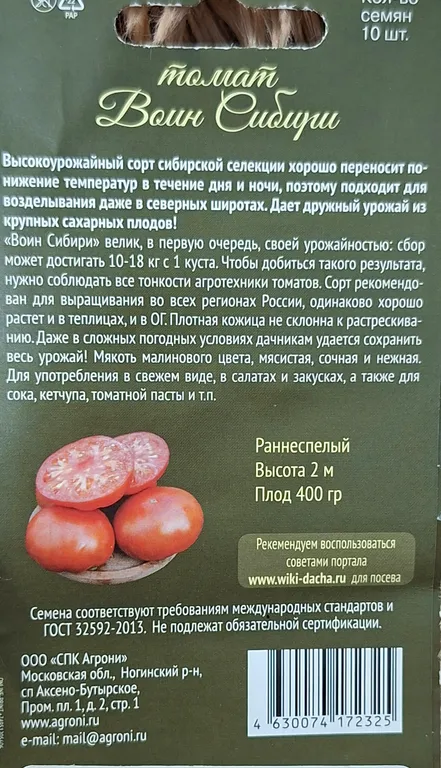 Если вы выращивали Томат Воин Сибири, об этом растении. По возможности загрузите фото куста или плодов. Спасибо!