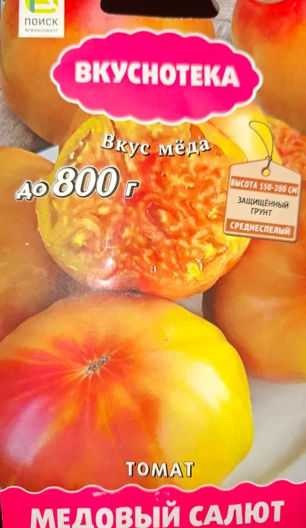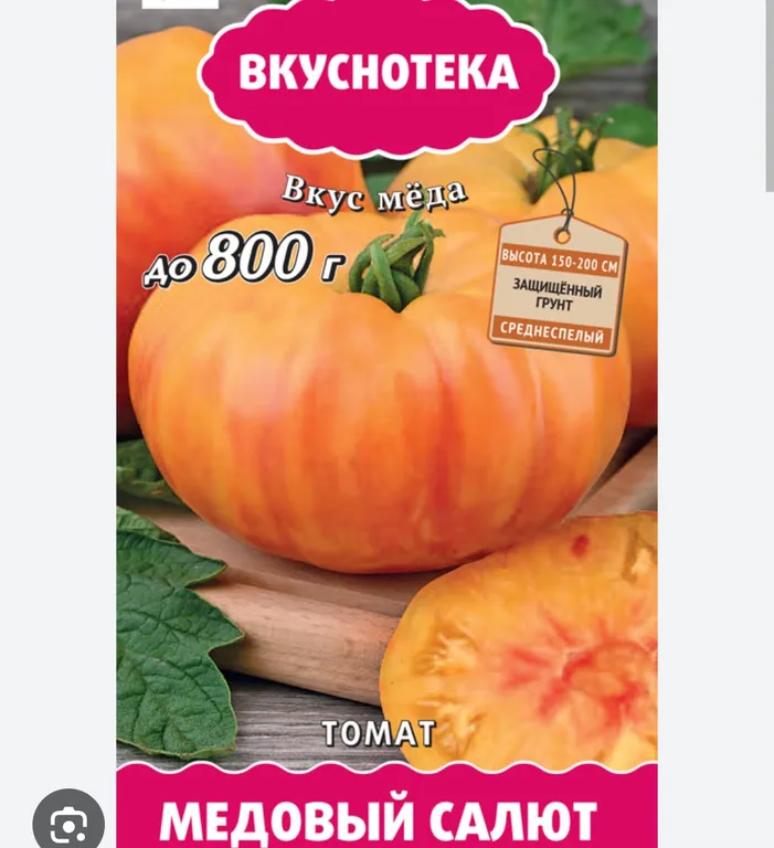 Насыщенный аромат, медовый вкус. Прекрасные двухцветные плоды отлично подходят для нарезки. Среднепоздний сорт для пленочных теплиц. Красивые, мясистые плоды плоскоокруглой формы, золотистого цвета с красными пятнами. Масса до 450 г.