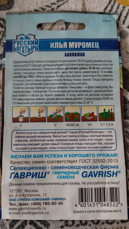 Если вы выращивали Баклажан Илья Муромец, об этом растении. По возможности загрузите фото куста или плодов. Спасибо!