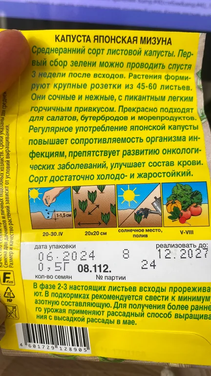 Сорт среднеранний. От высадки рассады (30-35 дней) до начала технической спелости 30-35 дней. Формирует слабоприподнятую розетку из 45-60 листьев, высотой 37-41 см, Листья тёмно-зелёные, узкие, лировидно-перисто-лопастные, по краю сильнорассеченные, гладкие или слабоморщинистые. Черешок белый. Масса одного растения 1,0-1,5 кг. Вкус слабогорчичный, свежий. Устойчив к цветушности. Хорошо отрастает после срезки, Содержит биологически активные вещества. Используется для свежего потребления. Рекомендован для выращивания в открытом и защищенном грунте. Высадка рассады по схеме 50х30 см. Урожайность листьев с черешками 4,5-6,7 кг/м2.
