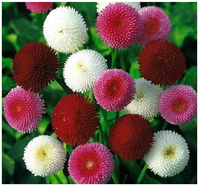 Популярные миниатюрные маргаритки высотой до 15 см. Многочисленные соцветия диаметром до 2,5 см с перьевидными «лепестками» разнообразной окраски. Цветёт в апреле-июне. Универсальное использование: как почвопокровное растение, для обрамления клумб, балконных ящиков, альпинариев.