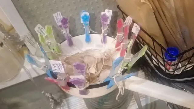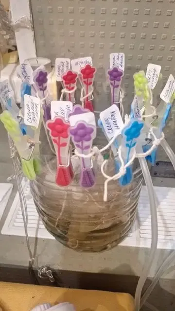 А это прищепки,можно любые, в мешочек кладем семена, если сорта не принципиальны, мы можем весь перец,например,в один мешочек,но у меня все по-сортам.