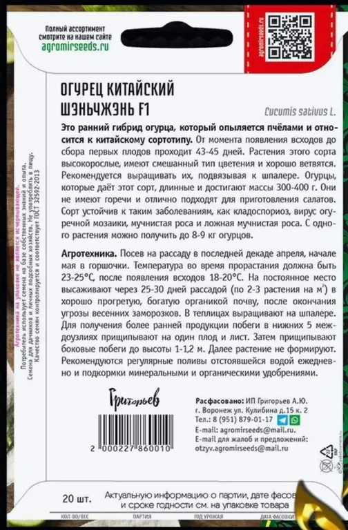 Огурец Сортов 8 шт Растений 8 шт