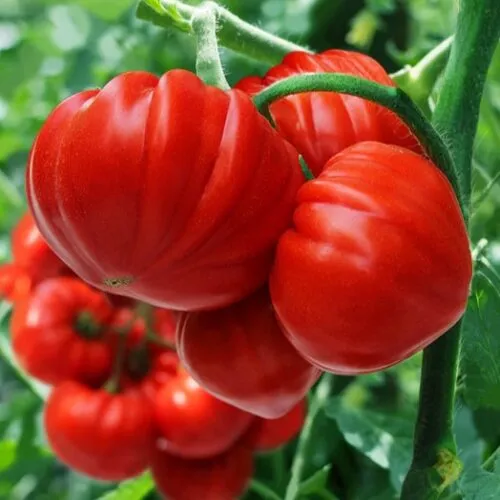 Сады России 2023 год. Раннеспелый (60–65 дней), высокоурожайный индетерминантный гибрид французской селекции (Clause), относящийся к сортотипу «Бычье сердце». Плоды крупные (200–500 г, до 600 г), ребристые, плоскоокруглые с характерным «носиком», очень сладкие и мясистые. Отличается стрессоустойчивостью, подходит для теплиц и открытого грунта.