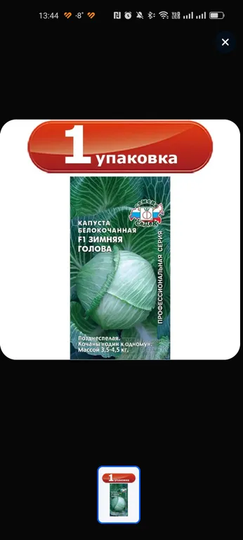 белокочанная F1 ЗИМНЯЯ ГОЛОВА